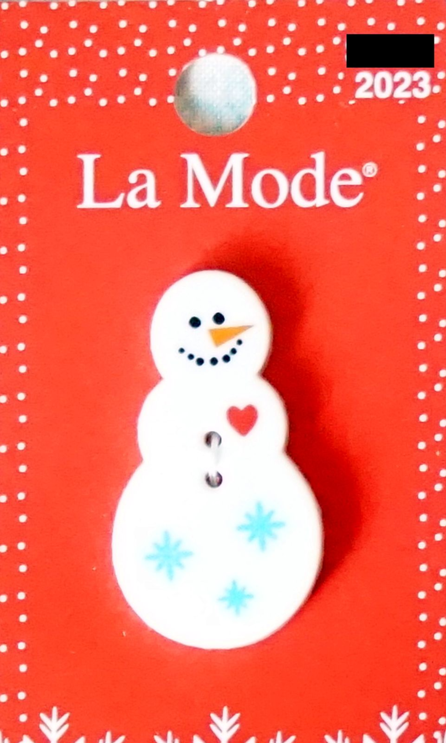 La Mode Holiday Snowman Button 1.5 Inch Made in Thailand