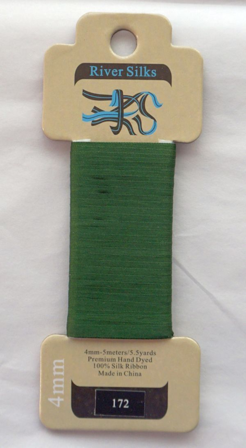 River Silks SILK RIBBON 4mm COLOR 172 Hunter Green Hand Dyed 5.5 Yards